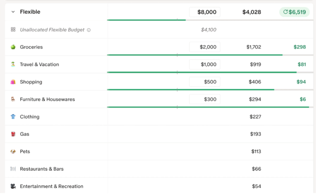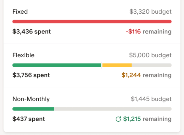 Monarch pro tip: Monarch can track your transactions in real time with your linked accounts. If you want to stick to a Flex budget, set up a separate checking account with its own debit card and automatically transfer a set flex allowance once per week, keeping an eye on your balance whenever you’re about to spend on a flex category to make sure you have enough. This sets a physical limit on your spending.
