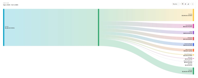 Monarch pro tip: Monarch automatically compares your income and expenses and helps you visualize what percentage of your monthly income is going to which categories under the Reports section.