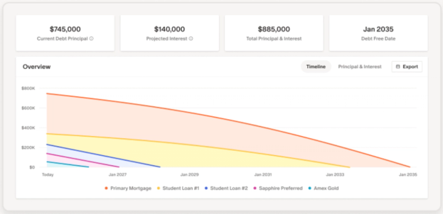 Monarch Pro Tip: Watch your debt progress with Monarch’s Debt Dashboard, which automatically tracks your payments and interest and creates a forecast based on your balances and payments.