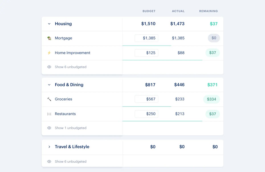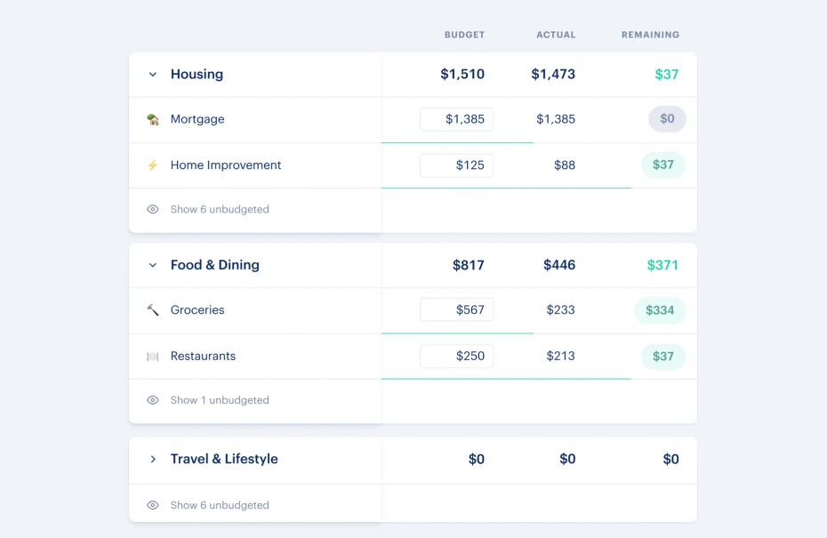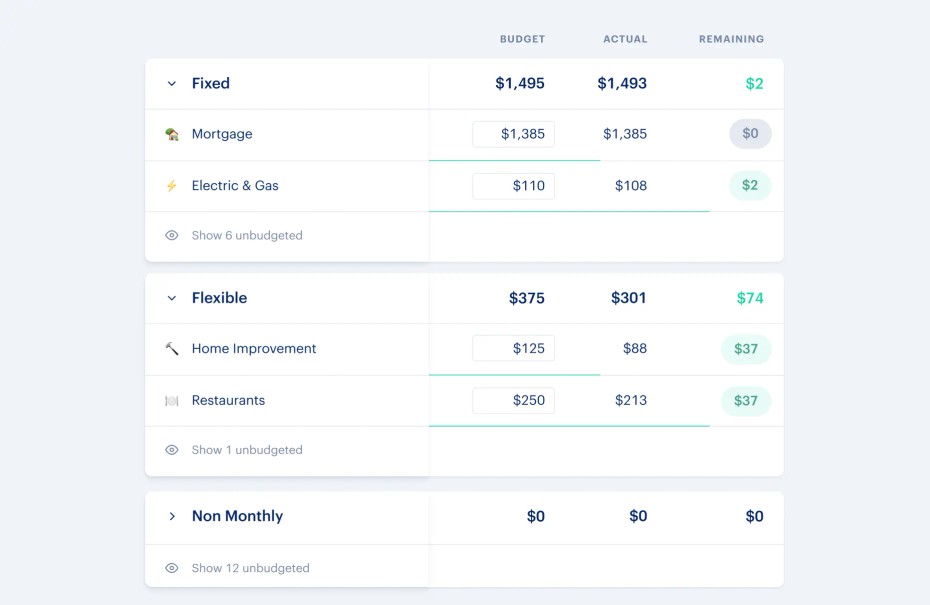 This is the most common way to budget and it's the default experience when you first try budgeting in Monarch. There are 14 expense groups to start: