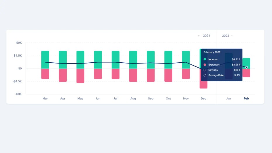 If you are tracking cash flow (with or without a budget) there are two particularly helpful features - your saving rate percent and the trend of this month's expenses vs last months. Both of these are great ways to track your spending without a budget:
