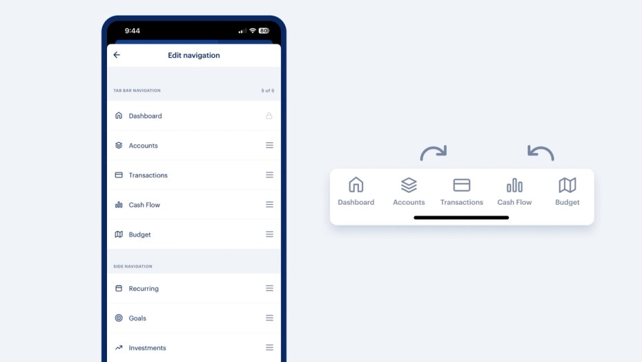 On iPhone, the bottom nav of your app now has 5 tabs by default for a more focused view. All other screens are still quickly accessible in your sidebar.