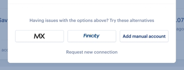 We've changed our UI to make it much easier to select alternative data partners when syncing accounts. This is a great option if you're unable to sync an institution with the primary data partners. Note that this is currently on the web app only, but will be added to mobile soon.