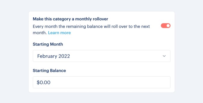 You can now set a “starting balance” for your rollover budgets. This gives you more control over the rollover amounts and how they carry forward. We also renamed the “Plan” to “Budget” in the main navigation.