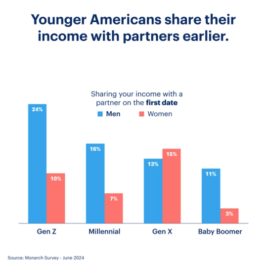 - Young women are also more likely, though not as much: 7% of women want to discuss income on the first date. But for Gen Z women, the number is 10%.