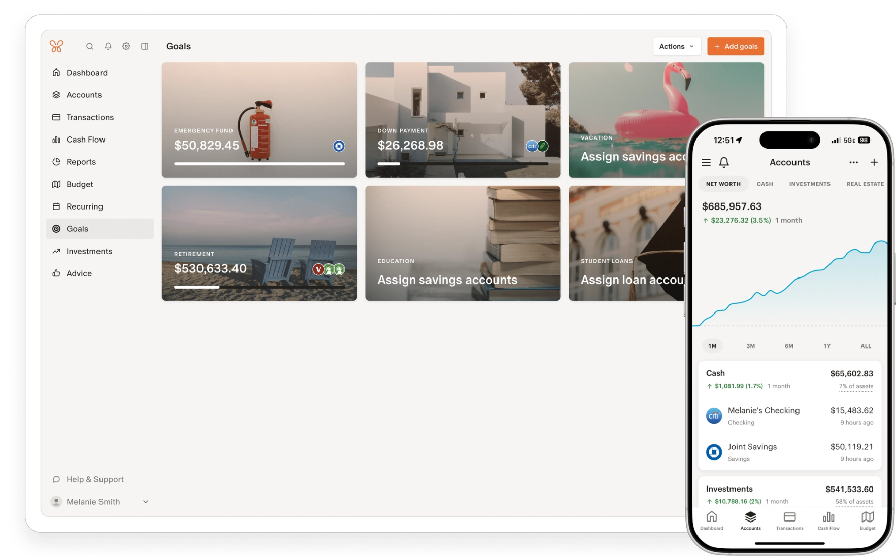 Give each account a purpose by assigning it to a goal, and track your progress automatically.