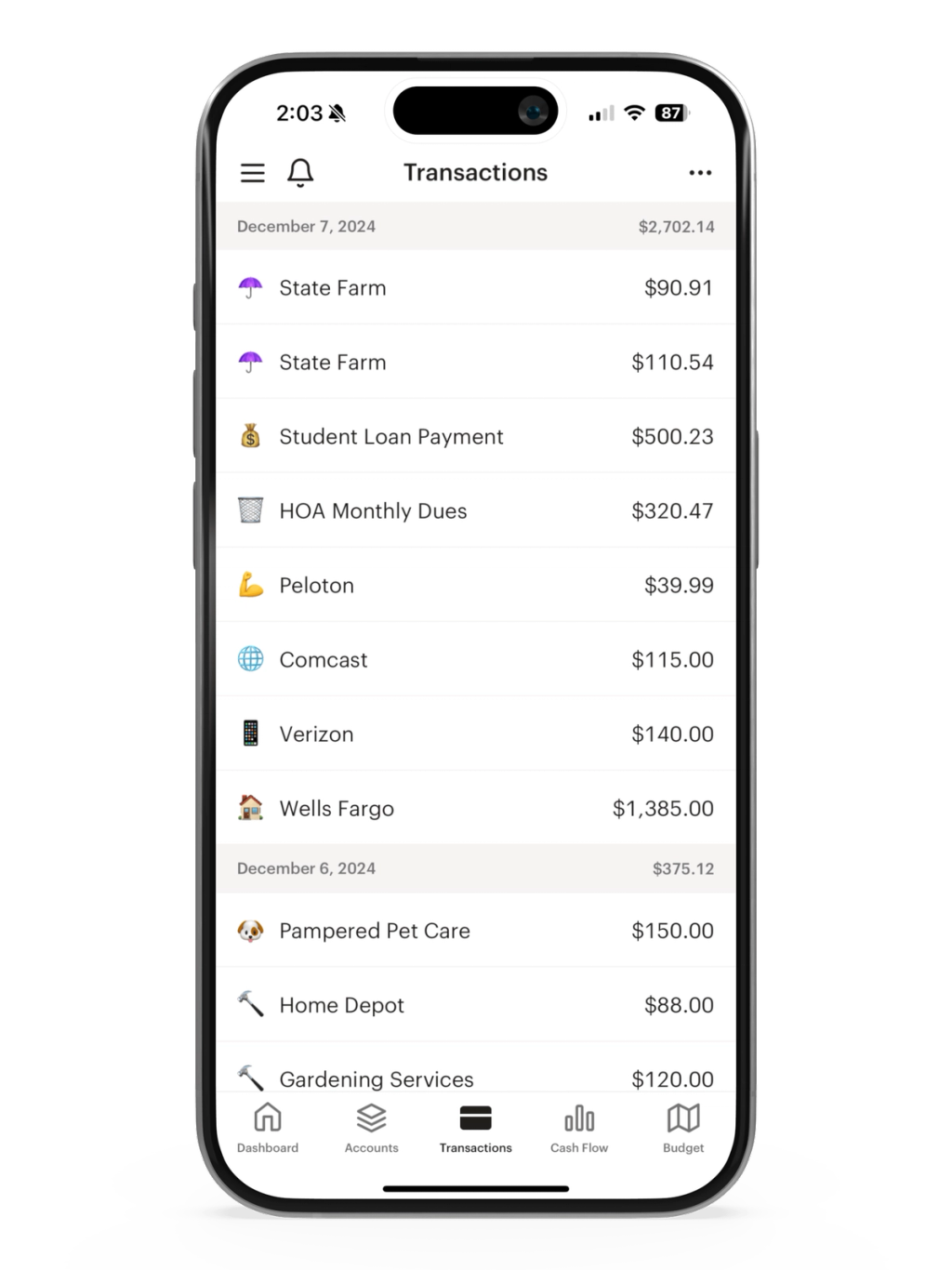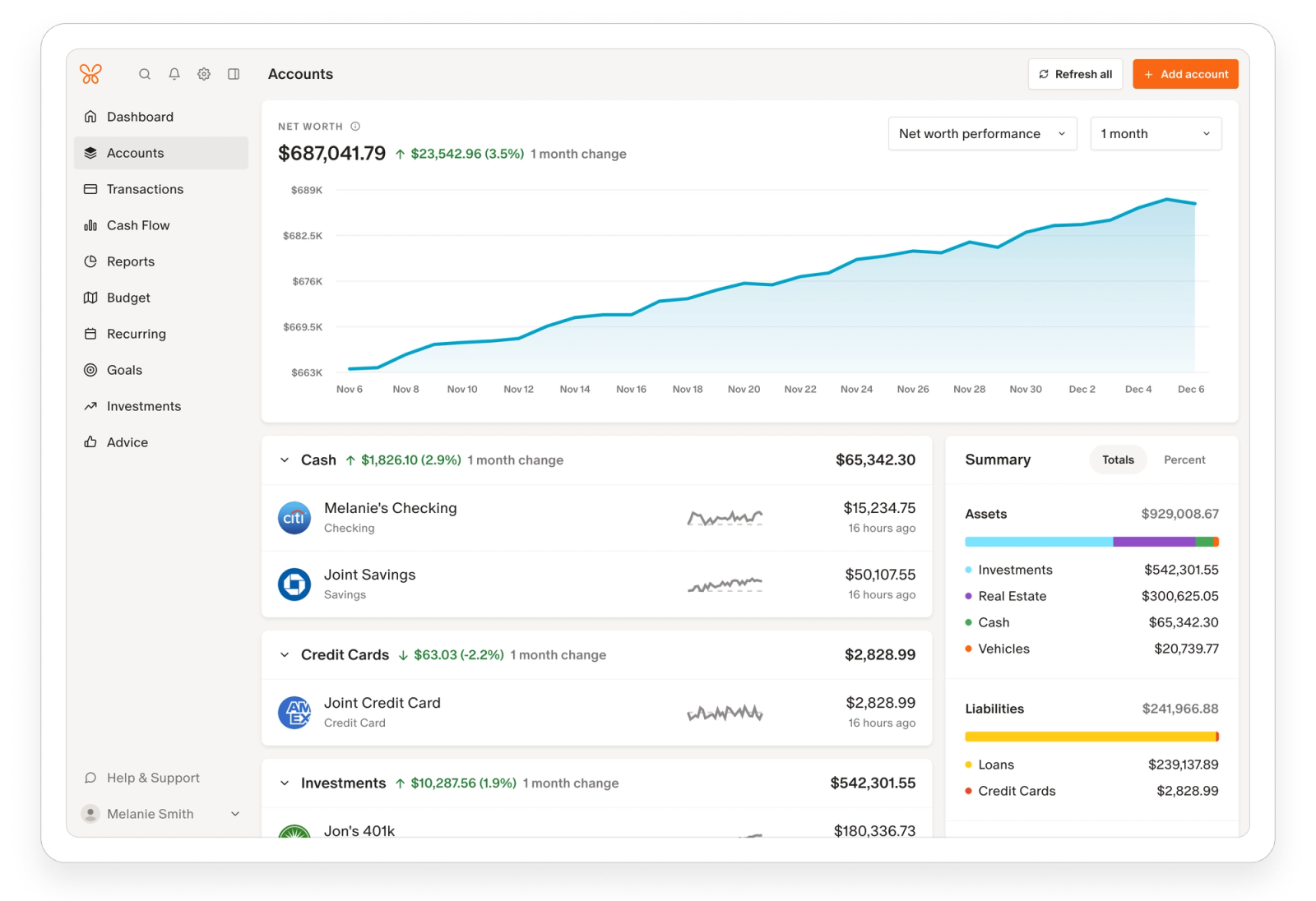 Bring together your bank accounts, real estate, investments, credit cards, loans, and more.