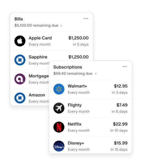 View your bills and subscriptions as either a calendar or a list, all in one place.