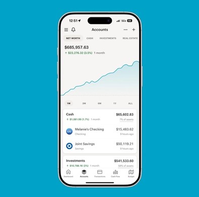 "The dashboard of Monarch Money displays a clear, concise view of a user’s accounts in one location and offers different views for cash flow, planning, and goal-setting. An investment tracker is built in to make tracking your portfolio a painless process, including historical data analysis and charting tools."