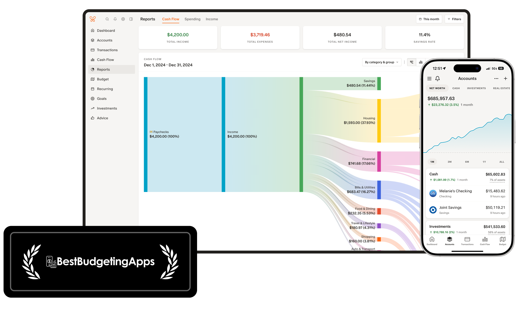 “This app does it all. It combines extremely granular monthly budgeting functionality with holistic, high-level wealth management tools/goal setting better than any app out there.”