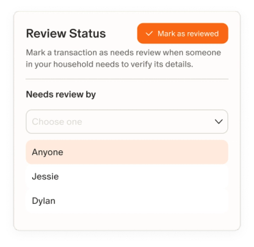 Invite your partner to your household at no extra cost. They'll get their own login, and you'll both get a joint understanding of what's happening with your money.