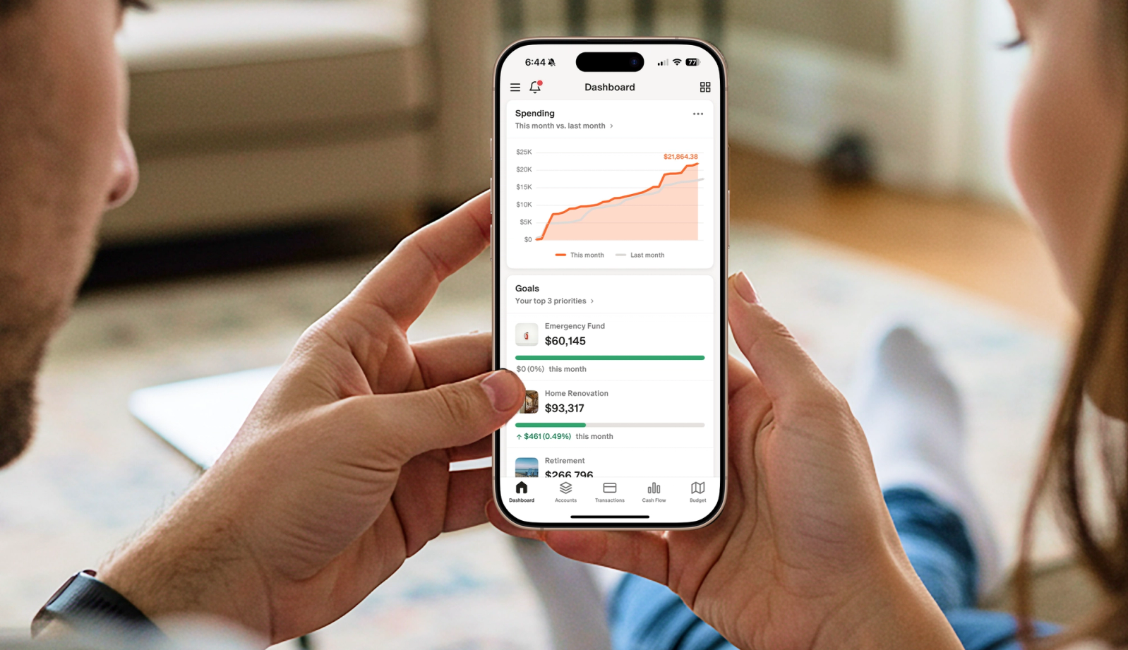 Sync accounts, set shared goals, build flexible budgets, and watch your net worth grow—together.