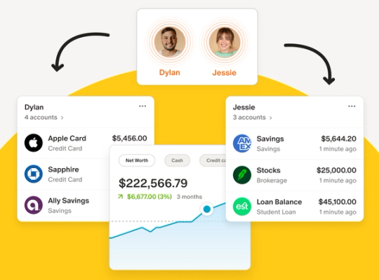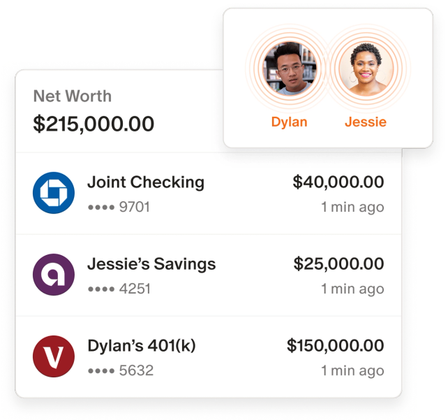 Connect all your bank accounts, credit cards, loans, real estate, and investments to see your entire financial picture in one place. When you and your partner both sync your accounts, you’ll get a shared view of your finances—making it easier to stay aligned and plan together.