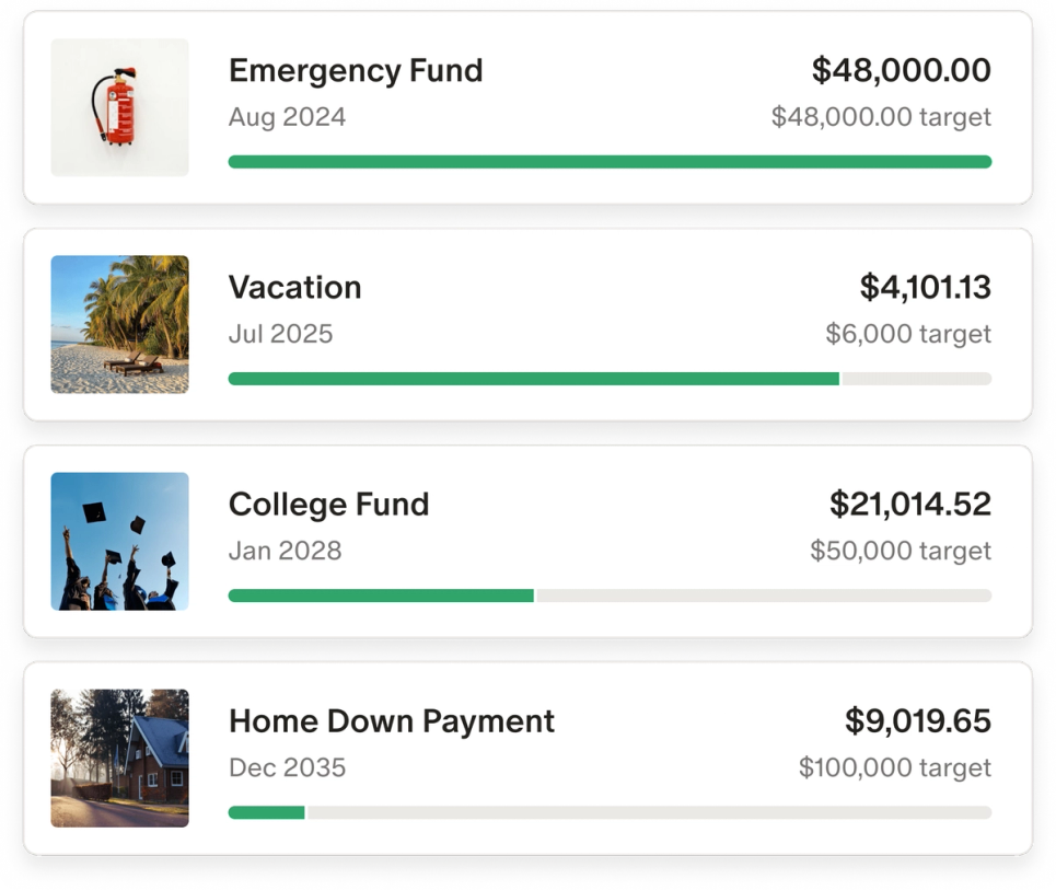 Create a clear plan to save for what matters—whether it’s a home, a vacation, or a rainy day fund. Set targets, track your progress, and stay motivated as you watch your savings grow over time.