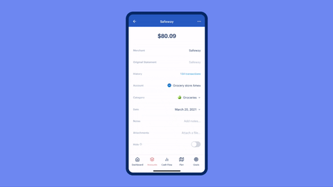 Organize your transactions in the moment by splitting them into multiple categories on the transaction's information tab. This is great for purchases at stores like Target, where you may buy a bunch of stuff that needs to be categorized separately.