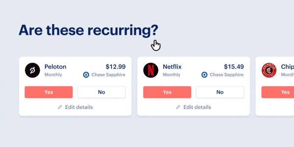 - Review new recurring transactions: we’ll surface newly detected recurring transactions or bills and ask you to approve or edit them before they show up on your Recurring page. This will ensure better accuracy and a more tailored approach to what you’d find most helpful to track on this page.