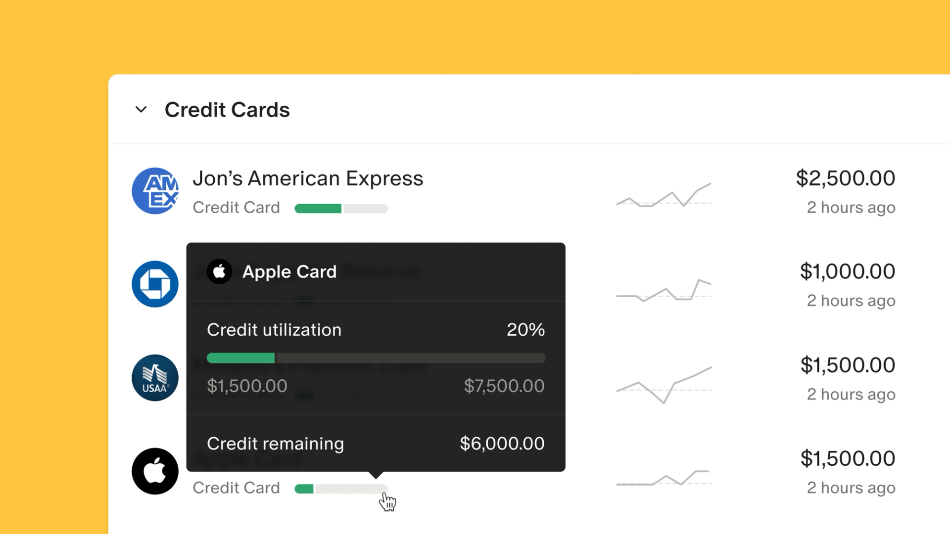 - A detailed breakdown of your current balance, limit, and credit remaining (on web, just hover over the utilization bar from your Accounts page)
