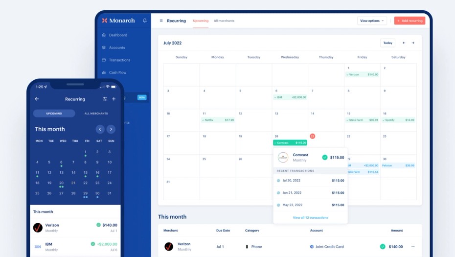 - A new monthly calendar view to plot out upcoming transactions for the current month