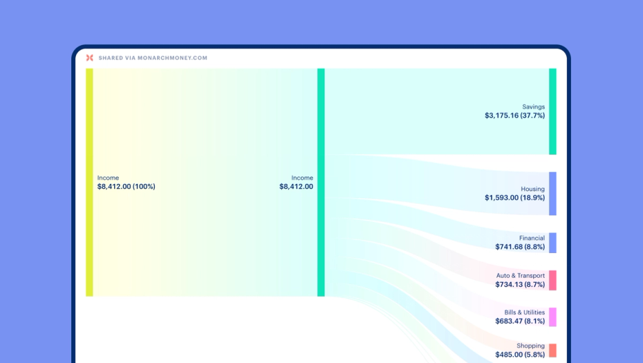 One of the exciting parts of our Sankey diagram is its ability to be shared with others. Whether you're discussing your finances with a family member, or seeking advice from a financial planner, you can conveniently share your income and expense flow. For privacy, you also have the option to share the diagram with all dollar amounts hidden.
