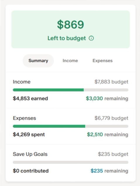 As you budget out your categories, Monarch will inform you of how much you have left to budget, allowing you to track how much you have left to allocate.