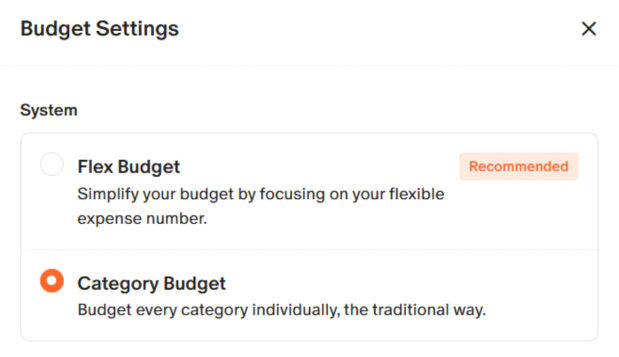 Next, go to your budget tab, select Settings (the little gear in the top-right corner) and select the option for category budget.
