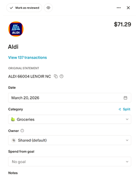Monarch will assign categories based on your transaction merchants. You can review transactions by clicking on each category, and change the category and rules by clicking on the transaction.